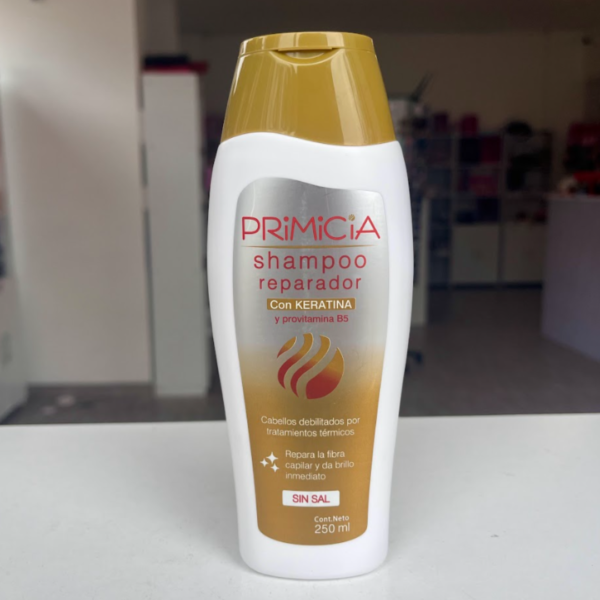 Shampoo Primicia 250mL reparador con keratina cantidad