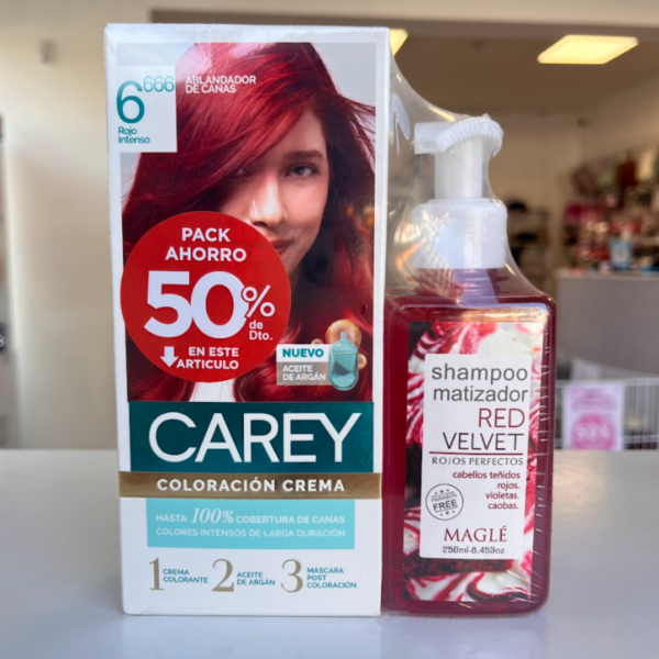Tinta + shampoo matizador Red Velvet